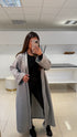 Die weiten Ärmel und der bodenlange Fall unterstreichen die moderne, feminine Linie, während das dezente Grau vielseitig kombinierbar bleibt – ob über einem schlichten Outfit für den Alltag oder über einem Kleid für elegante Anlässe.
